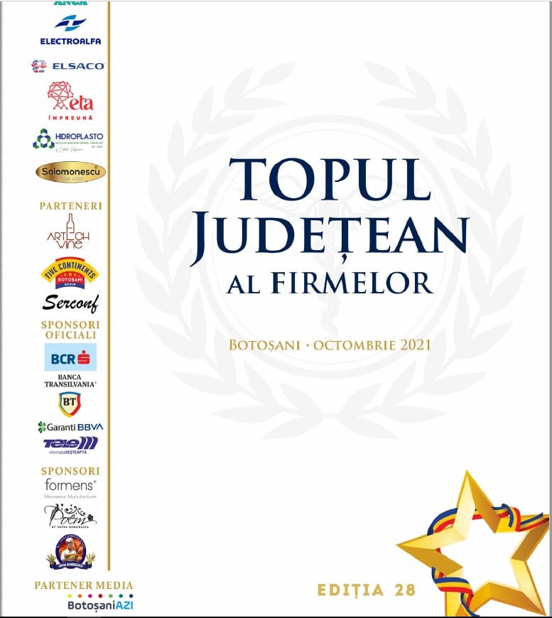 Topul Județean al Firmelor, ediția XXVIII-a, realizat de Camera de Comerț Industrie și Agricultură Botoșani, editat in 2021, are la baza datele finaciare ale anului 2020.